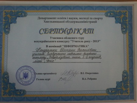 Кондратюк Тетяна Василівна - вчитель інформатики НВК "СЗШ, І-ІІІ ст., ліцей "Успіх"